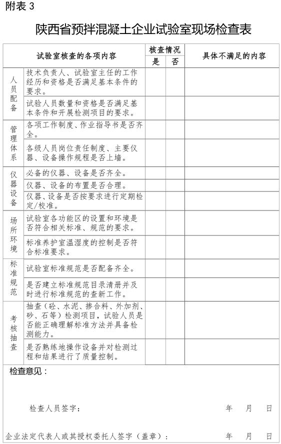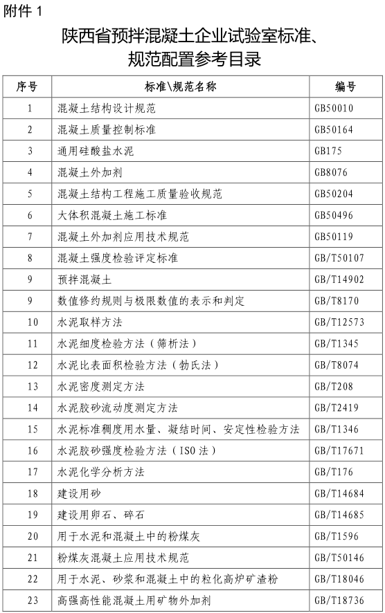 关于印发《陕西省预拌混凝土企业试验室基本条件》的通知