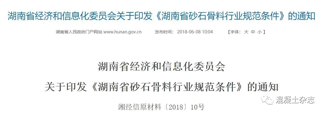 湖南省在机制砂石产品和砂石行业相关标准方面,走在全国前列,早在2018年2月23日,湖南省经济和信息化委员会就印发了《湖南省砂石骨料行业规范条件》。