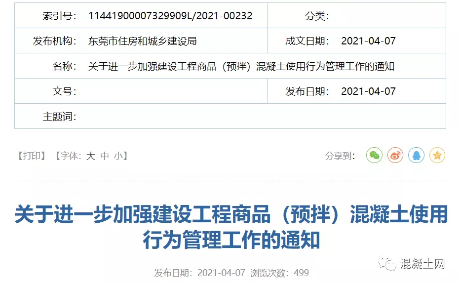 关于进一步加强建设工程商品(预拌)混凝土使用行为管理工作的通知