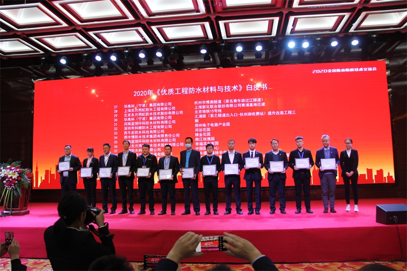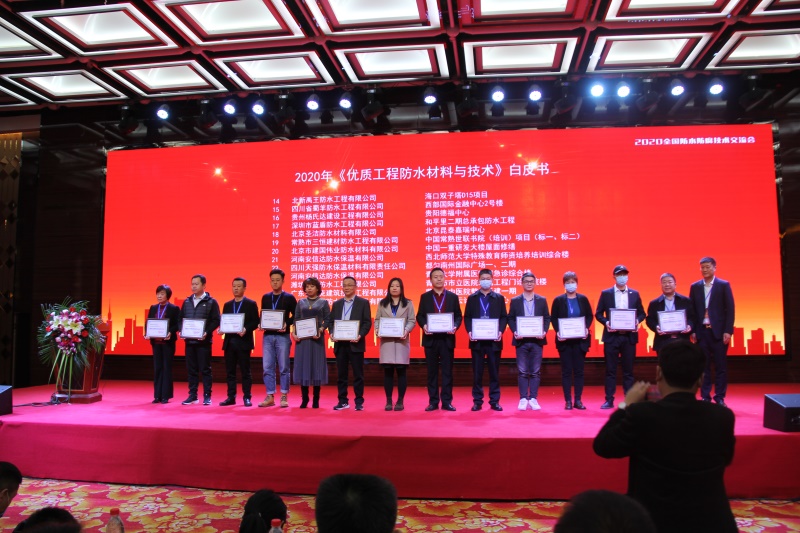 《优质工程防水材料与技术白皮书(2020)》是由中国建筑业协会建筑防水分会与《施工技术》杂志社共同发起,并联合发布的典型防水工程案例报告,力求以技术进步为核心动力,促进防水材料与施工技术的深度融合,推动建筑防水行业发展开辟新路径。2020版《白皮书》共收录了29家企业的39篇工程案例。曲慧主任、刘文中副会长、徐萌副总裁分别为入编项目代表颁发入编证书。