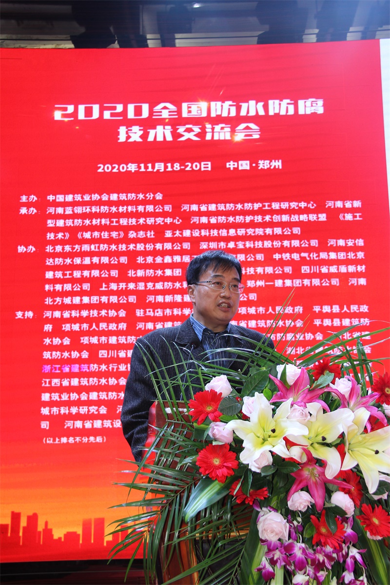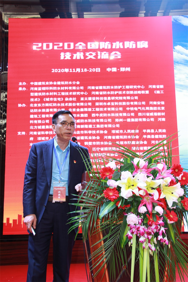 2020年11月18-20日, 2020全国防水防腐技术交流会在郑州召开。本次会议由中国建筑业协会建筑防水分会主办,河南蓝翎环科防水材料有限公司、河南省建筑防水防护工程研究中心、河南省新型建筑防水材料工程技术研究中心、河南省防水防护技术创新战略联盟、《施工技术》《城市住宅》杂志社、亚太建设科技信息研究院有限公司承办。中国建筑业协会副秘书长景万,中国建筑业协会建筑防水分会会长熊衍仁、专家委员会主任曲慧、常务副会长兼秘书长张可文等领导、专家;河南、河北、四川、辽宁、浙江、湖北、黑龙江、青海、江西、重庆、项城、平舆、鹤壁、长垣等地方防水防腐社团组织和建设单位领导莅临;来自全国各地防水施工 企业、防水材料生产企业、防水研究机构、大专院校、建设单位、总包 企业、工程质量监督检测单位及新闻媒体单位,参会代表共计300余人。
