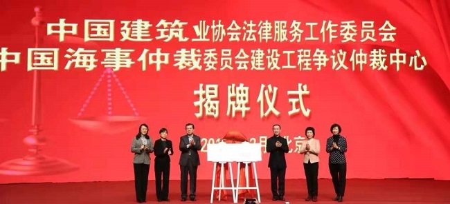12月10日上午,中国建筑业协会法律服务工作委员会和中国海事仲裁委员会建设工程争议仲裁中心揭牌仪式在北京举行。中国建筑业协会会长王铁宏、副会长吴慧娟、副秘书长王秀兰,中国海事仲裁委员会秘书长顾超、副秘书长兼仲裁院副院长陈波、副秘书长解常晴共同为新机构揭牌, 来自各地区和有关行业的建筑业企业代表共1600余人见证了这一时刻。