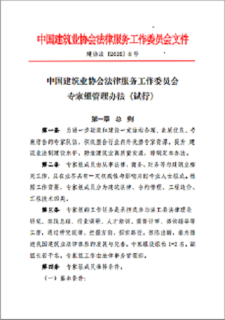法工委初步形成了管理制度体系,为法工委开展有序工作提供了依据。草拟并初步通过了《中国建筑业协会法律服务工作委员会工作方案》、《中国建筑业协会法律服务工作委员会管理办法(暂行)》、《中国建筑业协会法律服务工作委员会调解规则(暂行)》及“收费标准”、《中国建筑业协会法律工作委员会调解员管理及报酬支付办法(暂行)》等基本管理制度和规则。