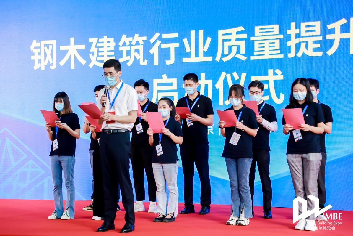 大会举行了“钢木建筑行业质量提升行动启动仪式”,由“全国劳动模范”、浙江精工钢构集团总工程师刘中华领读《钢木建筑质量提升行动倡议书》,发出推动质量管理体系建设、激发行业企业发展热情,推动全行业形成高质量发展共识等9项倡议,得到参会人员的一致响应。