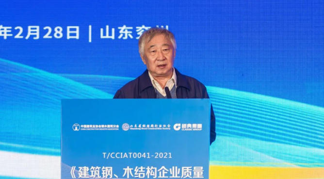 山东省钢结构行业协会会长周学军、山东经典重工集团股份有限公司董事长史振华分别代表主办单位和承办单位致辞。住房和城乡建设部市场监管司原司领导、中国建筑业协会钢木建筑分会高级顾问刘哲讲话,他表示编制《标准》并开展宣贯活动符合国家质量强国的战略要求,符合当前建筑行业发展要求,是钢木建筑分会助推行业高质量发展的有力举措。