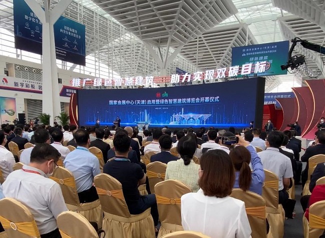 6月24日上午,中国建筑业协会、中国对外贸易中心共同举办的首届绿色智慧建筑博览会在国家会展中心(天津)开幕。