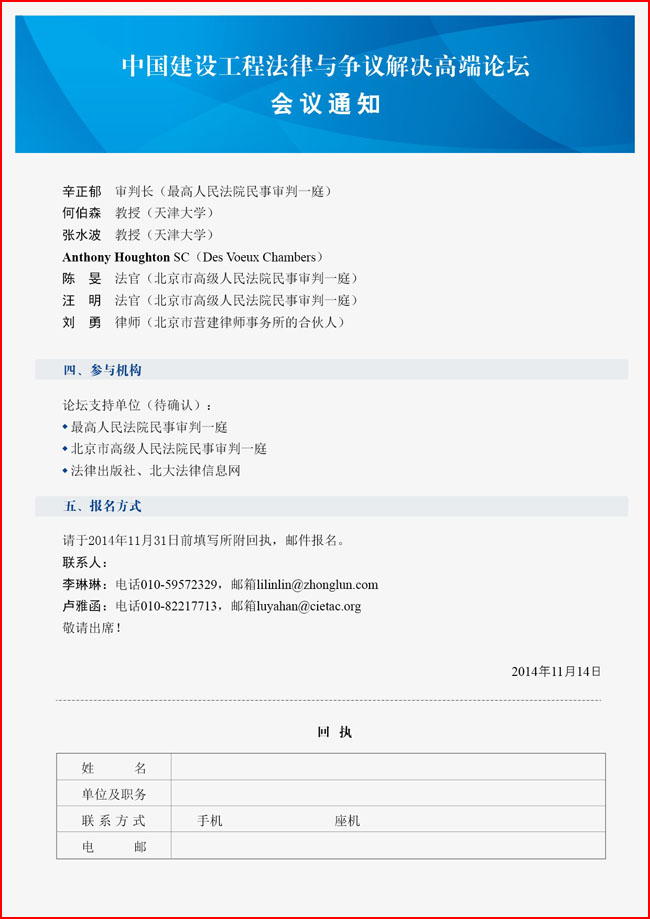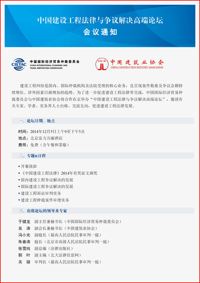 中国建设工程法律与争议解决高端论坛会议通知