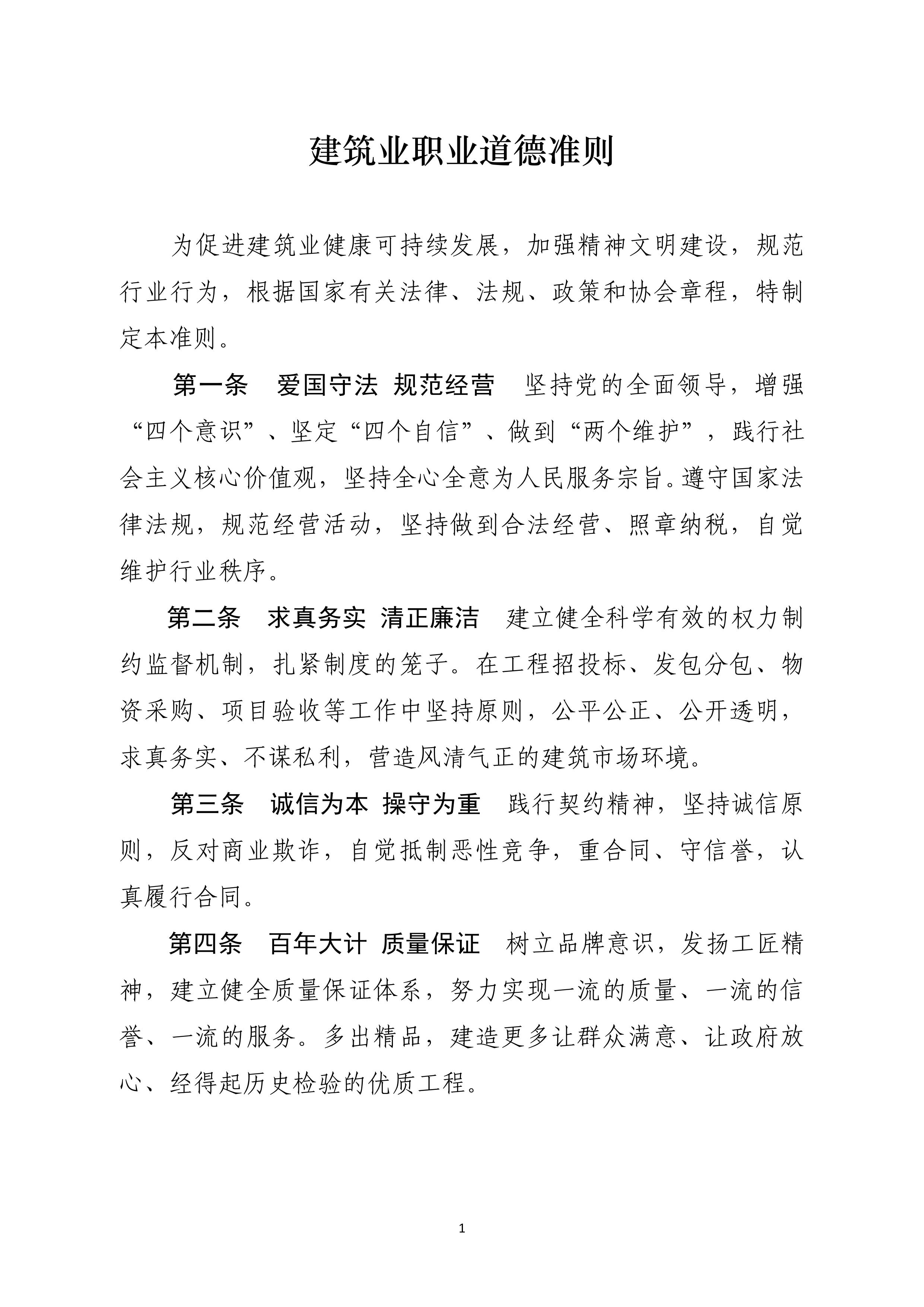 为促进建筑业健康可持续发展,加强精神文明建设,规范行业行为,根据国家有关规定,制订了《建筑业职业道德准则》,现予以印发,请认真遵守。