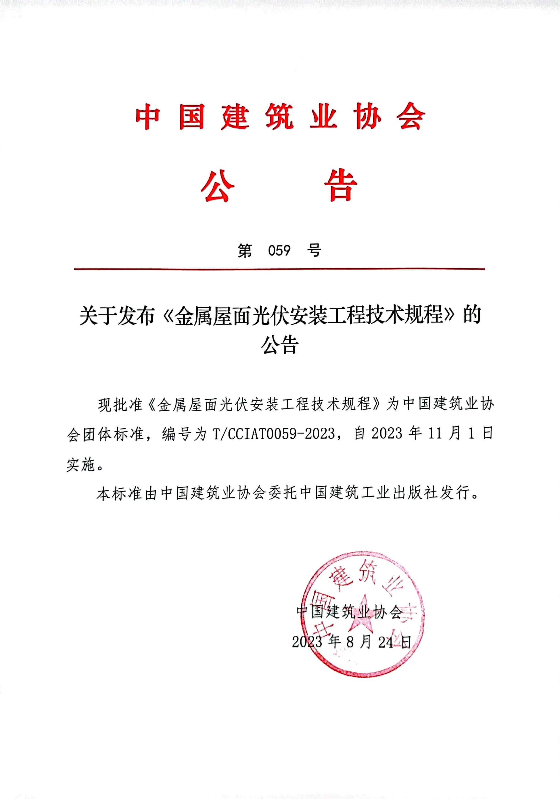 关于发布《金属屋面光伏安装工程技术规程》的公告