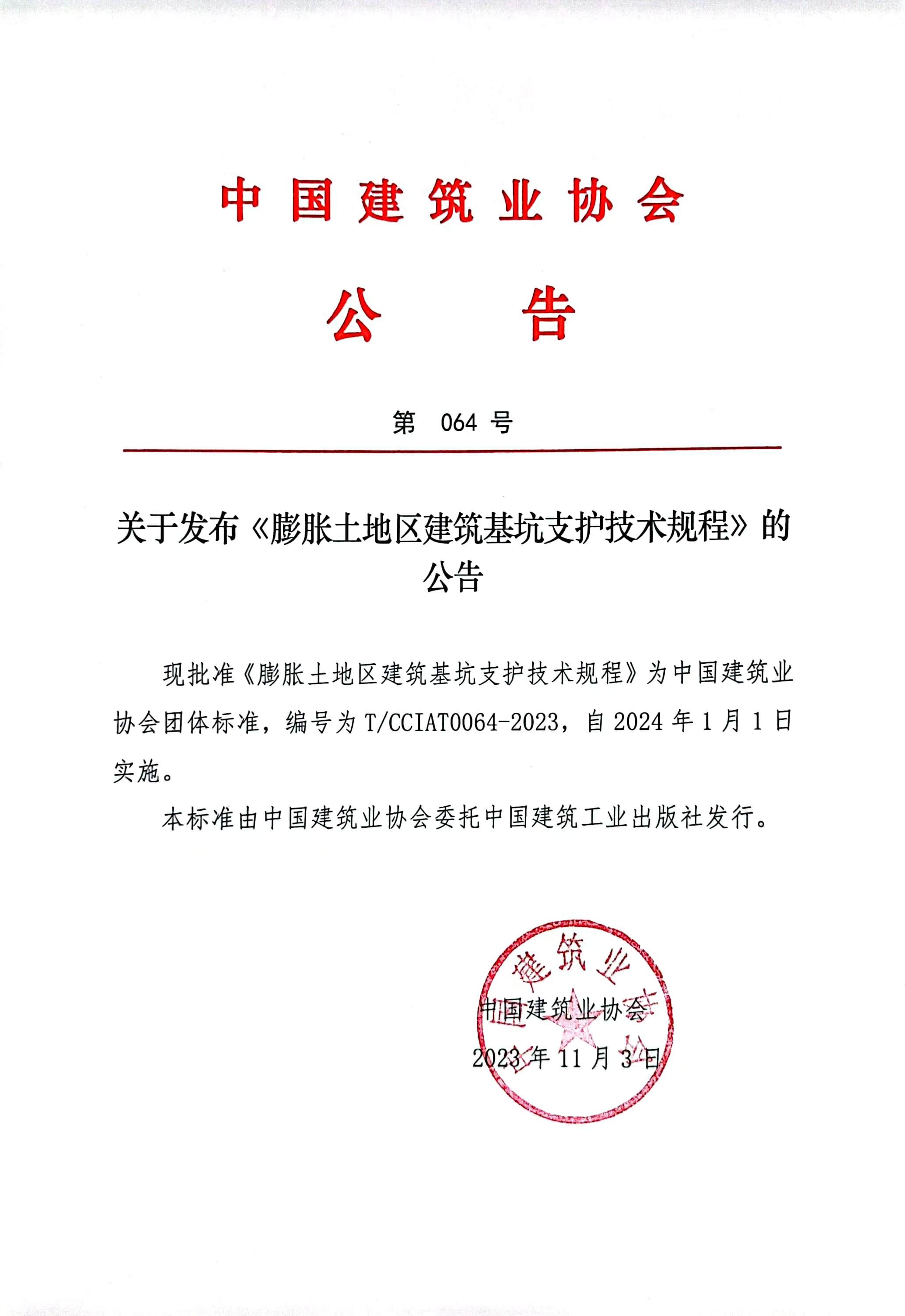 关于发布《膨胀土地区建筑基坑支护技术规程》的公告
