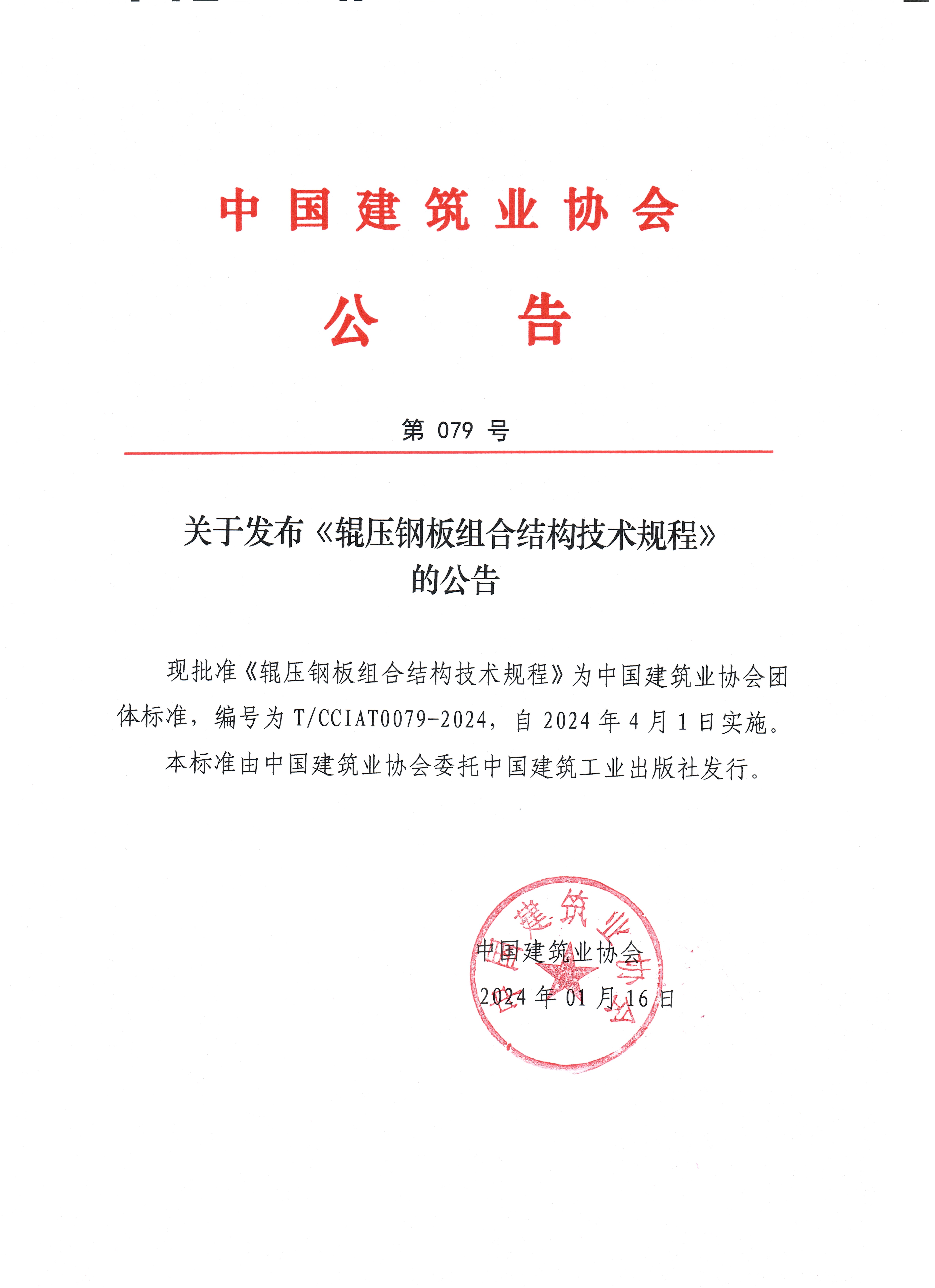 关于发布《辊压钢板组合结构技术规程》的公告