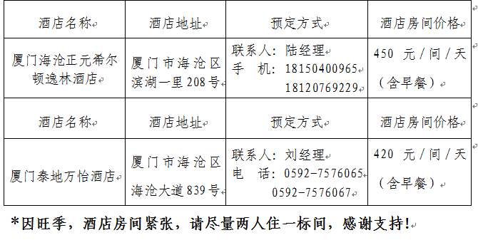 报到地点:厦门海沧正元希尔顿逸林酒店一楼大厅(厦门市海沧区滨湖一里208号)