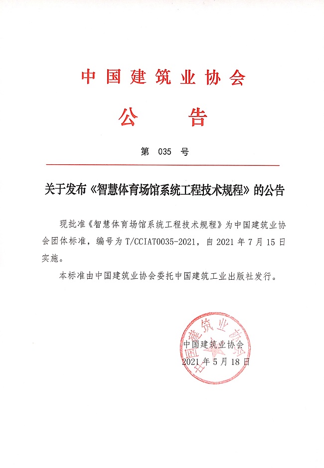关于发布《智慧体育场馆系统工程技术规程》的公告