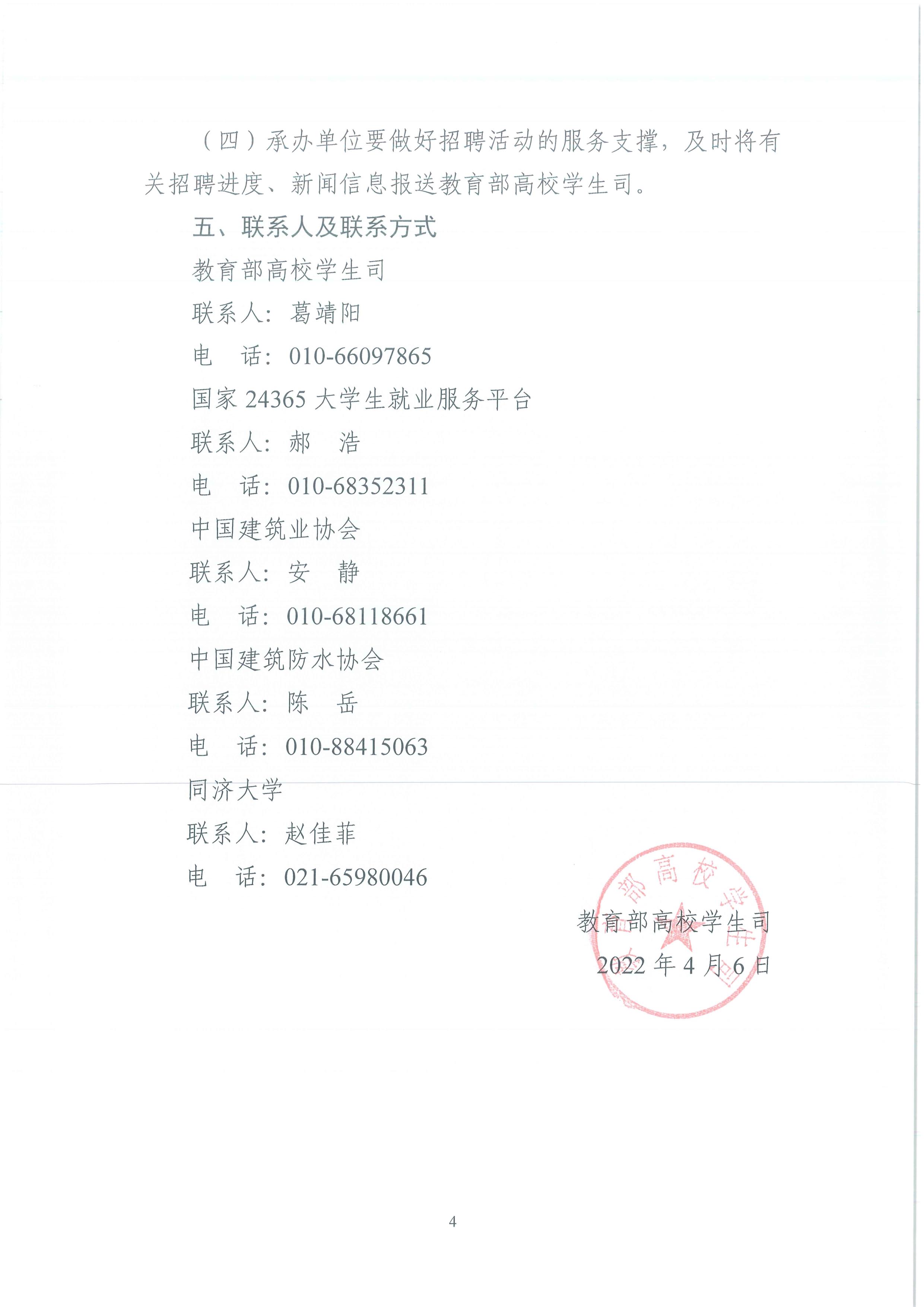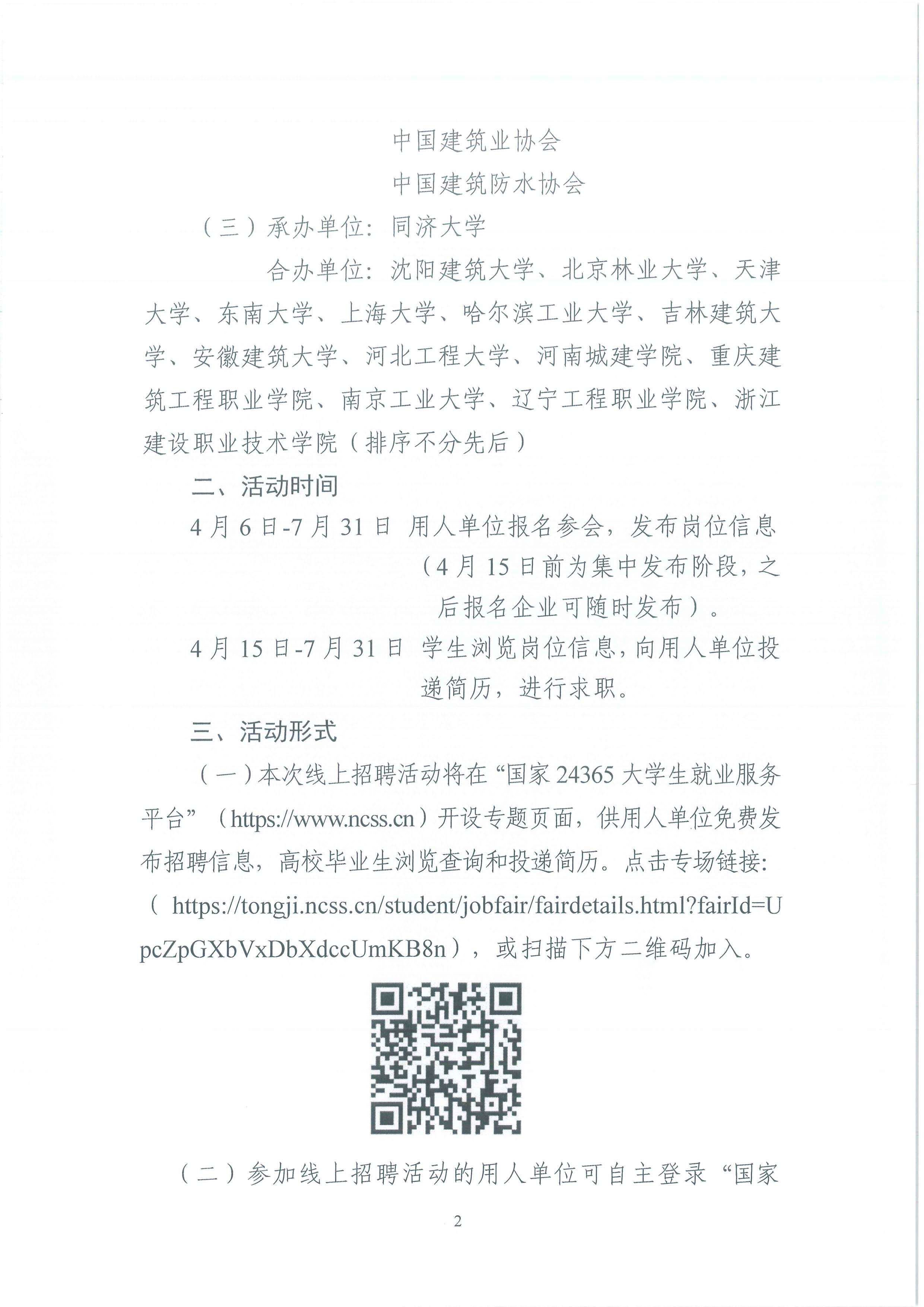 为深入贯彻落实党中央、国务院“稳就业”“保就业”决策部署,做好2022届全国普通高等学校毕业生就业工作,现将《关于举办教育部“24365校园招聘服务”建筑地产行业专场招聘活动的通知》转发给你们,请有用人需求的会员企业自主登录“国家24365大学生就业服务平台”,按通知要求发布招聘信息、加入此次招聘活动。