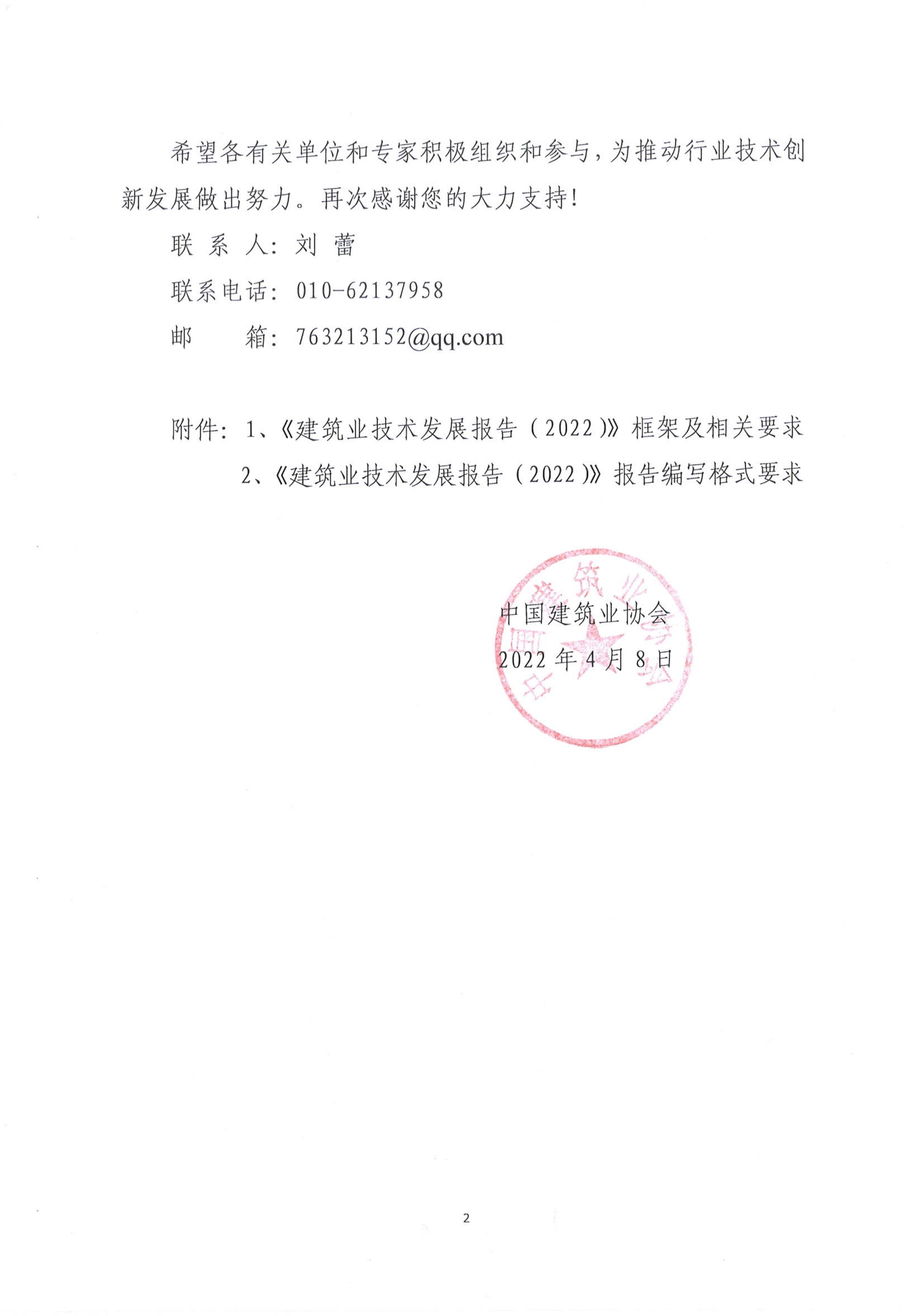 关于征集《建筑业技术发展报告(2022)》稿件的函