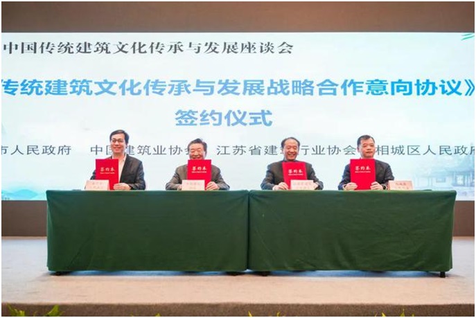 开幕式上,中国建筑业协会、江苏省建筑行业协会、苏州市人民政府、相城区人民政府共同签署了《四方战略合作框架协议》。四方将在保护传承传统建筑技艺、加强人才培养和技术交流等方面深化合作、共赢未来。