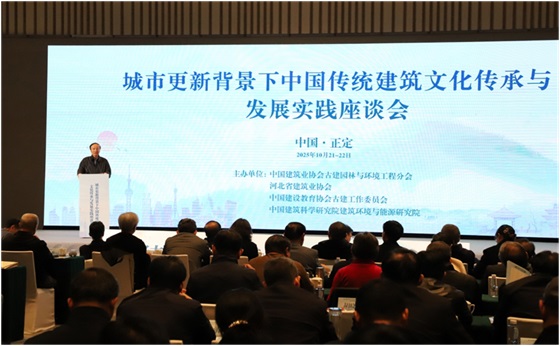 由中国建筑业协会指导,中国建筑业协会古建园林与环境工程分会、中国建设教育协会古建工作委员会、河北省建筑业协会、中国建筑科学研究院建筑环境与能源研究院共同主办的城市更新背景下中国传统建筑文化传承与发展实践座谈会于2025年10月21日至22日在河北正定召开。