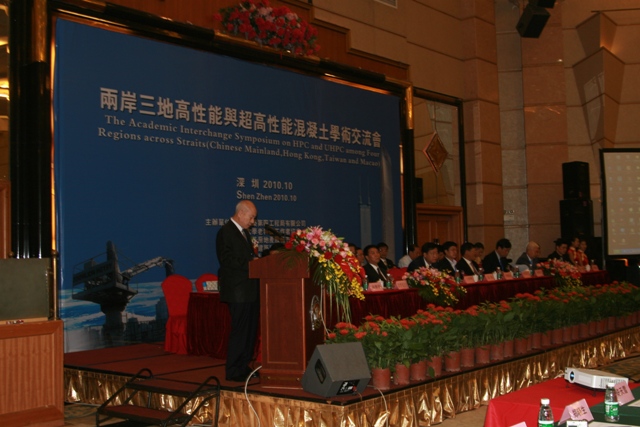 2010年10月28-29日,来自中国两岸三地以及马来西亚、新加坡等国的混凝土领域著名专家学者以及相关技术人员齐聚中国大陆,围绕在建的深圳第一高楼——京基国际金融中心的建设进行学术交流研讨,中国建筑业协会副会长兼秘书长吴涛应邀出席会议并致辞。