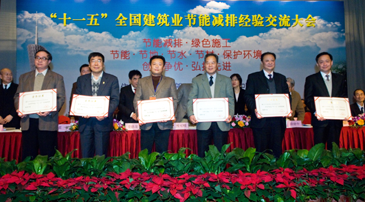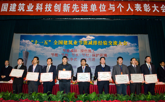 会议在总结交流“十一五”期间建筑业节能减排经验的同时,还对“十一五”期间为建筑业科技工作做出突出贡献的先进企业和个人进行了表彰。北京城建集团有限责任公司等140家企业、叶可明等19名专家、冯跃等120名总工程师和李久林等219名个人获此殊荣。来自全国建设行政主管部门的领导、行业协会负责人、专家学者及企业代表共400多人出席了会议。
