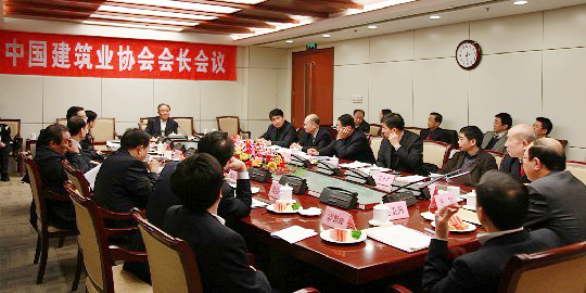 1月17日,中国建筑业协会2011年会长会议在京召开。郑一军会长主持会议并讲话,副会长丘小广、刘龙华、李长进、李里丁、李宝元、张鲁风、易军、范集湘、杨镜璞、徐义屏、耿裕华、栾德成、蒋志权、楼永良出席会议。副会长兼秘书长吴涛汇报了2010年协会工作,并提出2011年的八项工作要点。