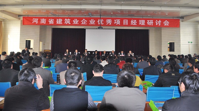 为建立优秀项目经理人才的长效培训机制,提升高层次项目经理的整体素质与管理水平,培养建设一支高素质、复合型、国际化的项目经理队伍,由河南省建筑业协会组织的河南省建筑业企业优秀项目经理研讨会暨首期国际工程项目经理培训班于2011年3月中旬在郑州市举办。中国建筑业协会副会长兼秘书长吴涛、河南省建筑业协会会长洪瀛、河南省住房和城乡建设厅副厅长黄旭升、建管处处长李新怀、河南省建筑业协会秘书长李娟、中建协工程项目管理委员会秘书长敖军出席开班仪式。来自河南省建筑行业的300余名项目经理参加了此次培训。