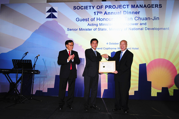 第十七届项目经理年会由新加坡建设局与新加坡项目经理协会共同举办,来自新加坡、中国、澳大利亚、英国、日本等国的500余名建筑业同仁参会。年会上,吴涛秘书长等就中国建筑业转变发展方式、工程项目管理的成功实践做了专题演讲。鉴于吴涛秘书长在推动中新项目管理深入交流特别是理论研究和实践推广方面的重要贡献,被新加坡项目经理协会授予荣誉院士证书。