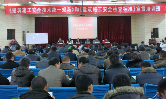 为贯彻落实国家有关安全生产方针,协助广大建筑企业制定科学合理的安全技术施工方案,推动建筑业从业人员自觉执行标准规范,提升安全管理水平。中国建筑业协会与河南省建筑业协会于2014年1月8~9日在郑州联合举办了《建筑施工安全技术统一规范》和《建筑施工安全检查标准》宣贯培训班。河南省住房和城乡建设厅建筑业管理处李新和处长出席开班仪式并致辞,中国建筑业协会景万副秘书长讲话,河南省建筑业协会洪赢会长,李娟副会长兼副秘书长及有关专家出席开班仪式。来自河南省及部分其它省、自治区、直辖市的建筑施工企业相关人员360余人参加了培训。