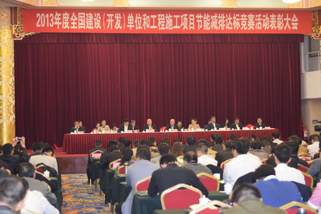 2014年4月14日,中国建筑业协会和中国海员建设工会全国委员会在北京隆重召开2013年度全国建设(开发)单位和工程施工项目节能减排达标竞赛活动表彰大会。中国建筑业协会副会长徐义屏、副会长兼秘书长吴涛、中国海员建设工会全国委员会建筑工作部部长耿群、中国建筑业协会副秘书长刘宇林、中国建筑业协会绿色施工分会会长王祥明、中国建筑业协会绿色施工分会副会长、中国工程院院士肖绪文等领导出席会议。参会代表300余人。