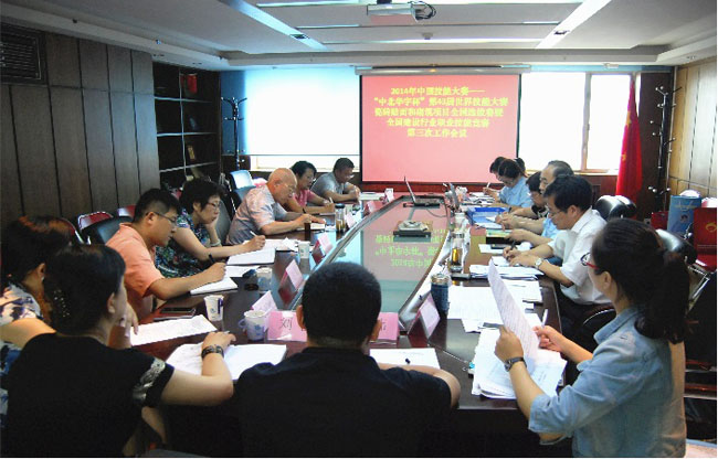 6月20日,2014年中国技能大赛——“中北华宇杯”第43届世界技能大赛瓷砖贴面和砌筑项目全国选拔赛暨全国建设行业职业技能竞赛第三次筹备工作会议在北京召开。中国建筑业协会副会长兼秘书长吴涛、中国海员建设工会建筑工作部部长耿群出席会议并讲话。中国建筑业协会副秘书长李蓬主持会议。中国建筑业协会副秘书长景万、中北华宇建筑工程公司总经理王金良等出席会议。
