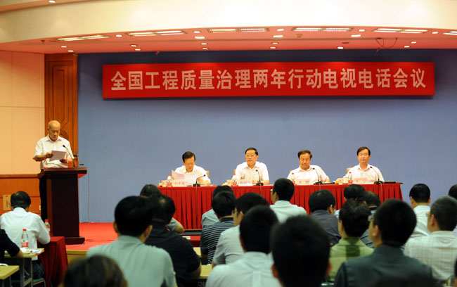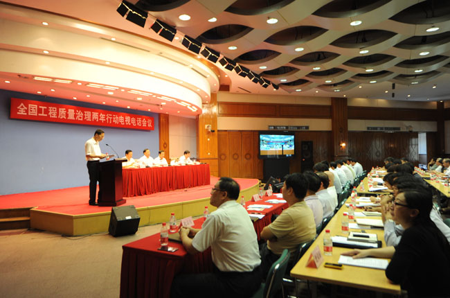9月4日,住房城乡建设部召开全国工程质量治理两年行动电视电话会议,传达、学习国务院领导同志关于抓好工程质量工作的重要批示,部署开展工程质量治理两年行动工作。住房城乡建设部党组书记、部长陈政高出席会议并讲话,部党组成员、副部长齐骥主持会议,部党组成员、副部长王宁就质量治理行动中要着力抓好的六项工作进行了部署,部党组成员、中央纪委驻部纪检组组长石生龙出席会议。住房城乡建设部建筑市场监管司负责人通报了2013年以来房屋市政工程质量安全事故及转包违法行为典型案例查处情况,宣读了对30家工程质量安全管理优秀企业通报表扬的通知。中国建筑业协会副会长兼秘书长吴涛代表协会宣读了《保障工程质量禁止转包违法分包行为倡议书》。北京、山东、福建、天津、安徽5个省市住房城乡建设部门负责人进行了交流发言。陈政高部长指出,今天部署的工程质量治理两年行动,是经过近四个月的筹备后,经部常务会议讨论决定的,并报请国务院领导同志同意。国务院领导同志对抓好工程质量作出批示。我们今天这个会议,实际上是传达、学习、落实国务院领导同志重要批示的会议。