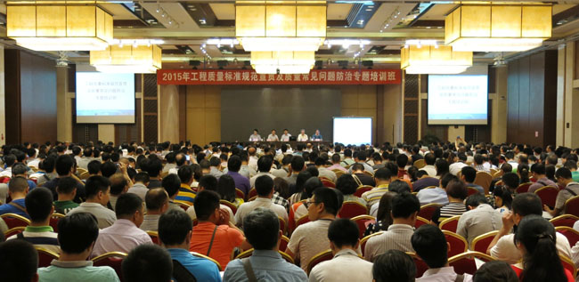 为贯彻落实住房和城乡建设部工程质量治理两年行动方案,强化工程建设标准规范的执行力度,有效防治工程质量常见问题,促进工程质量管理水平稳步提高,受住房城乡建设部工程质量安全监管司委托,中国建筑业协会于5月27~29日在四川成都举办了2015年第二期工程质量标准规范宣贯及质量常见问题防治专题培训班。来自四川、北京、云南、新疆等28个省市工程质量监督站和建筑施工企业的质量、技术、管理人员1000余人参加了培训。住房城乡建设部工程质量安全监管司工程质量监管处范宏柱主任、四川省建筑业协会杨乾芳执行会长及有关专家出席,中国建筑业协会景万副秘书长主持开班仪式。