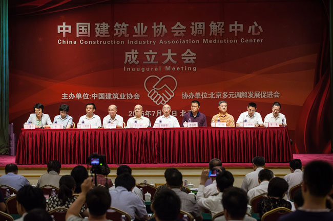 2016年7月23日,全国建筑行业首家具有行业调解职能的专业调解机构——“中国建筑业协会调解中心”在京成立。中国建筑业协会副会长兼秘书长吴涛、专家委员会副主任徐义屏,北京多元调解发展促进会会长翟晶敏、中国国际经济贸易仲裁委员会副秘书长李虎、北京仲裁委员会处长丁建勇、中国中铁股份有限公司董事会秘书兼总法律顾问于腾群以及法院系统的老领导出席会议。全国各地大型建筑业企业的法律部负责人、法律顾问,建设单位、房地产企业及勘察设计、工程造价、咨询检测、科研院校和律师界代表200多人参加会议。中国建筑业协会副秘书长王秀兰主持会议。