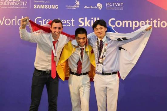 第44届世界技能大赛19日在阿联酋阿布扎比闭幕。建设行业选手梁智滨、崔兆举分别获得砌筑和瓷砖贴面项目金牌,从而实现了建设行业选手参加世赛金牌零的突破,同时顾威烈、郑科分别获得抹灰与隔墙系统和管道与制暖项目优胜奖,向党的十九大献上了一份贺礼。