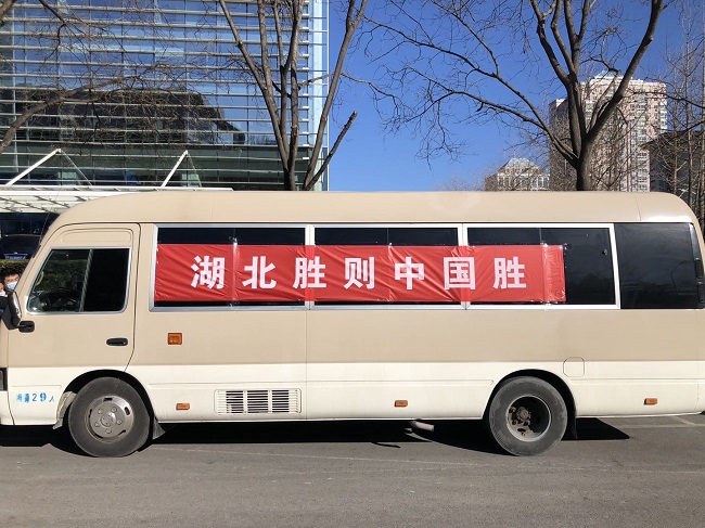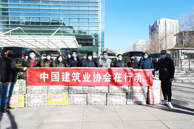 2月22日上午,中国建筑业协会向武汉建筑业企业捐赠10万个医用防护口罩,中国建筑第三工程局代表武汉建筑业企业接收捐赠物资。