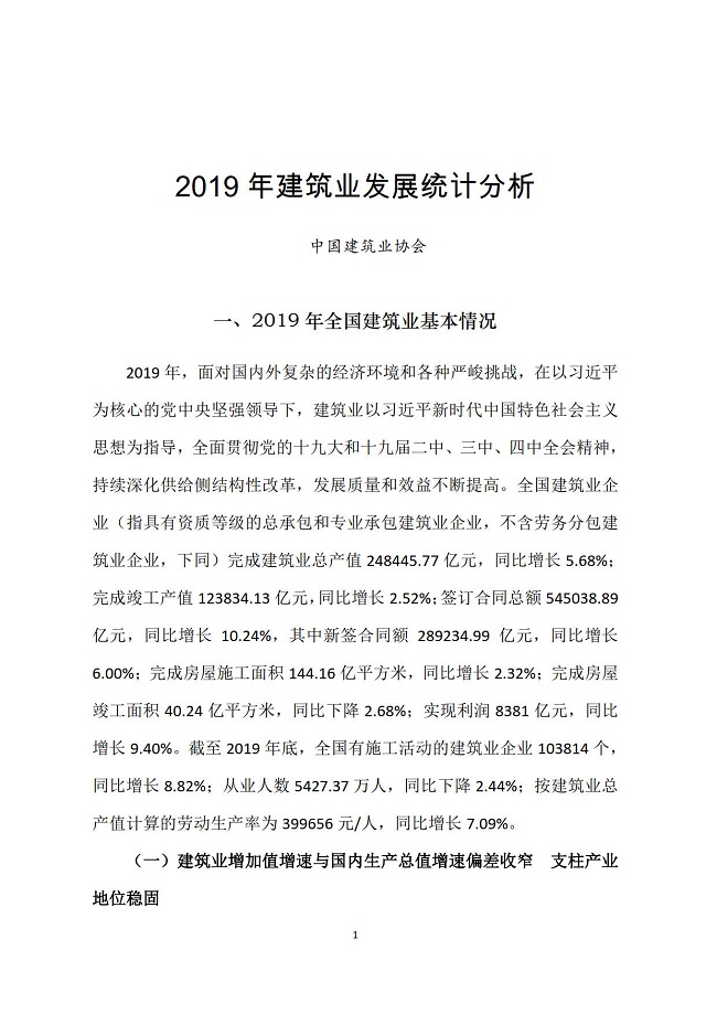 2019年建筑业发展统计分析