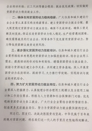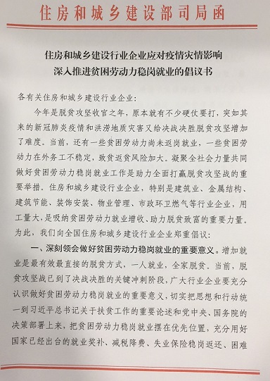 住房和城乡建设行业应对疫情灾情影响深入推进贫困劳动力稳岗就业的倡议书