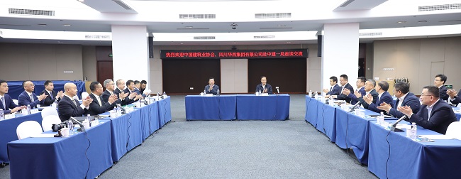 杨斌董事长介绍了华西集团的历史沿革和业绩,并结合打造四川省级建筑产业园介绍了华西集团未来的发展规划。他希望,通过合作致力为四川省由建筑业大省向建筑业强省转变贡献力量,充分发挥华西集团与中建一局良好的品牌和市场影响力,未来双方建立起沟通机制,就工程建设、工程技术、工程管理多方面展开合作。携手共进,走好合作之路。