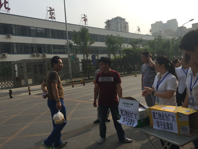 此次活动受到大家的一致好评,考生田某表示:“在炎热的天气里得到一瓶清凉水和一句问候,很窝心,也让紧张的情绪舒缓不少,将会以百倍的信心和努力决战高考,用好成绩来回报大家。”北京建工物业为高考点送清凉活动在小区内传为了佳话,小区的业主们称赞自己的物业管家作为国企为国家的高考贡献微薄之力,体现出了国企的社会责任意识,值得信赖。(供稿人 张国东)