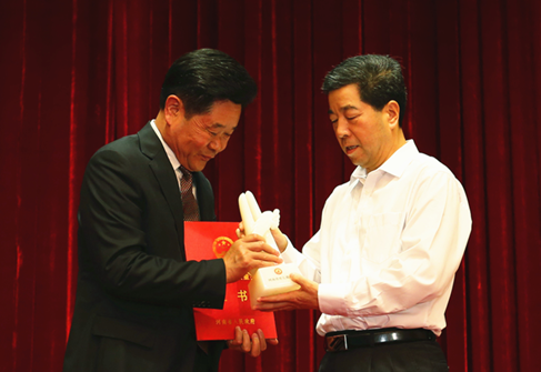 会上,陈润儿为郑州一建集团等8家企业颁发了2014—2015年度省长质量奖获奖证书和奖杯。