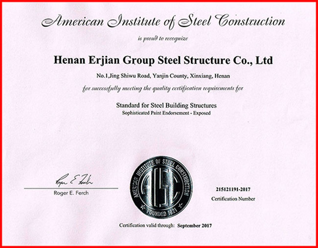 美国AISC标准是钢结构行业在研发、教育、质量认证、标准化等相关领域的首选标准,也是世界上最权威的钢结构认证标准之一,得到全球60多个国家和地区的认可。河南二建集团钢结构有限公司此次通过AISC认证,充分展示了公司的制造管理和技术水平已经与国际标准接轨,具备参与国际市场竞争、承接海外大型工程项目和高端项目的能力和水平,为开拓国际目标市场,发展海外业务,成为中国最具竞争力的钢结构产业公司奠定了坚实基础。