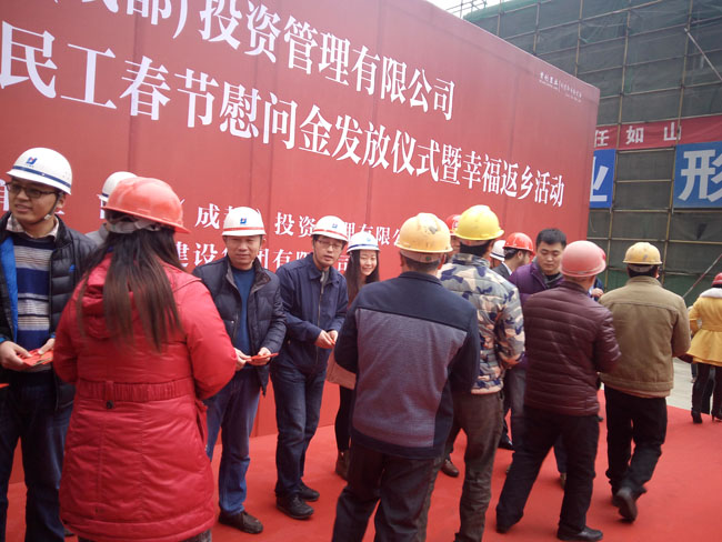 河北建设集团成都分公司、首创(成都)投资管理有限公司等相关负责同志出席欢送仪式,共同表达对农民工兄弟的感谢之情。他们亲手为农民工兄弟们包好过年的红包,祝福他们新的一年红红火火,财源广进。该集团首创娇子一号项目部也不甘落后,出资租用了数辆大巴车护送农民工兄弟安全返乡。