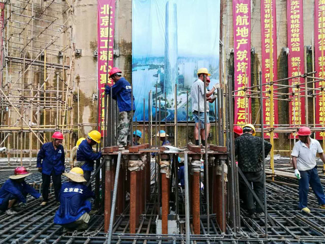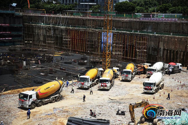 7月9日,由北京建工集团施工的428米的海南第一高楼——海口双子塔•南塔工程塔楼筏板基础单次9.6万吨近4万方混凝土浇筑施工任务拉开序幕。下午13时36分,海航地产总裁杨猛先生一声令下,第一车混凝土通过溜槽奔驰而下,海口双子塔•南塔大体积混凝土浇筑正式开始,全球六大传媒集团之一Havas、央视9频道、凤凰网等多家媒体亲临现场实况转播报道这项“超级工程”。
