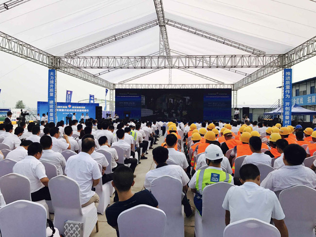 为响应国家号召,贯彻落实局和公司半年工作会精神,持续推进质量精细化管理,弘扬工匠精神,全面提升公司工程质量水平、项目管理水平和市场竞争力。8月28日,中建三局二公司在基础设施公司承建的襄阳白石街地下综合管廊PPP项目召开以“大力提升质量 建设质量强国”为主题的2017年“质量月”启动会暨质量观摩会。