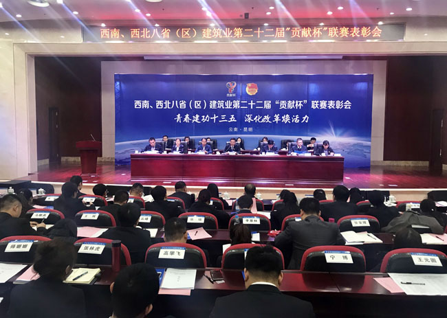 11月7日,由云南建投集团承办的西南、西北八省(区)建筑业第二十二届“贡献杯”联赛表彰会暨青工工作研讨会在昆明隆重召开。共青团云南省委副书记赵国良,贵州建工集团党委副书记程锐,甘肃建投党委副书记、纪委书记张育谦等领导出席表彰大会。云南建投党委副书记、副董事长李家龙致辞。来自西南、西北八省(区)建工集团的170余名青年代表参加会议。