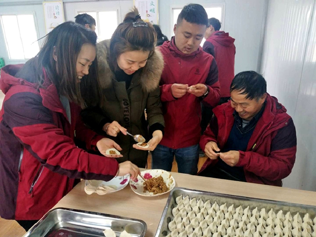 ●九公司临潼蓝光项目部诚挚邀请了建设单位、监理单位相关人员及劳务工友欢聚一堂,一起动手包饺子,共度佳节,让大家在这寒冷的冬日,也能感受到一丝温暖。