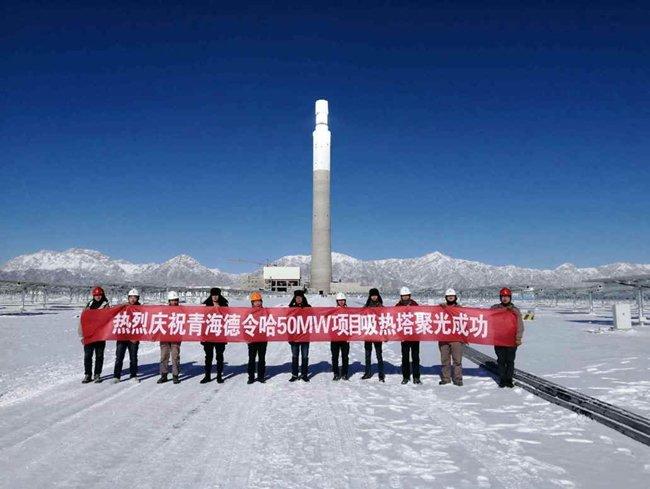 项目部全体人员缺氧不缺精神,艰苦不怕吃苦,海拔高斗志更高。尤其是在工程最后冲刺阶段,在零下近20℃严寒下,项目部全体管理人员和施工人员经常加班加点到深夜,最终在2018年底前实现了项目成功聚光并网发电这个重要目标,浙安铁军精神得到了业主的高度赞扬。该项目还入选《2018年中国光热发电示范项目建设成就专题片》,在敦煌召开的2019年中国光热发电市场形势与应对策略峰会上得到展示,受到行业的高度评价。