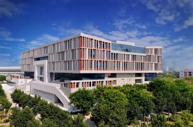 渭南职业技术学院图书馆项目,位于陕西省渭南市高新区职教园区,工程总建筑面积3.1万平方米,建筑总高度30.4米,框架剪力墙结构,是一座集藏书、档案管理、研究、展示、学术交流为一体的公益性建筑。工程建筑设计采用“日”字形平面布置。工程外立面体现了书架风格的独特外墙设计。
