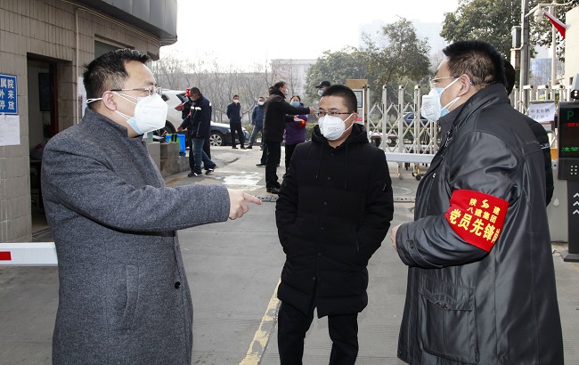 2月5日上午,陕建八建集团党委副书记、董事长、总经理、疫情防控领导小组组长章辉一行,来到该集团沙井村小区检查疫情防控工作,小区大门紧锁,检查组人员一一先测量体温、消毒,体温正常再登记才进入。物业人员每天会对院子公共场所进行无死角的3次消毒,筑牢小区第一道疫情“防火墙”,赢得群众好评。看到这个家属院上下严密布防、秩序井然后,章辉给予了肯定,代表集团疫情防控领导小组对全体工作人员的辛勤劳动和奉献精神表示感谢,叮嘱大家要继续严防死后,疫情不去不收兵,在做好疫情防控工作的同时,还要保护好自己。