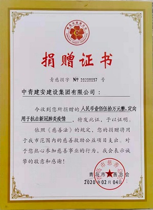 武汉疫情发展至今,牵动着社会各界的心,武汉人民和全国人民一同经受着巨大的考验。面对疫情,中青建安集团首批向青岛慈善总会捐赠50万元资金,今天,中青建安集团再次追加捐赠150万元,累计捐赠200万元,用于青岛市新型冠状病毒感染肺炎疫情防控指挥部办公室采购防护服、口罩、隔离衣、防护面罩等急需物资,以支援疫区肺炎疫情防控工作。