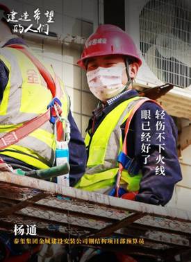 在各医院改建施工现场,像这样的人还有很多,他们或许朴实无华,或许平乏无奇。但是,却在关键时刻默默地扛起了担当的大旗,为疫情防控贡献一份自己的力量。